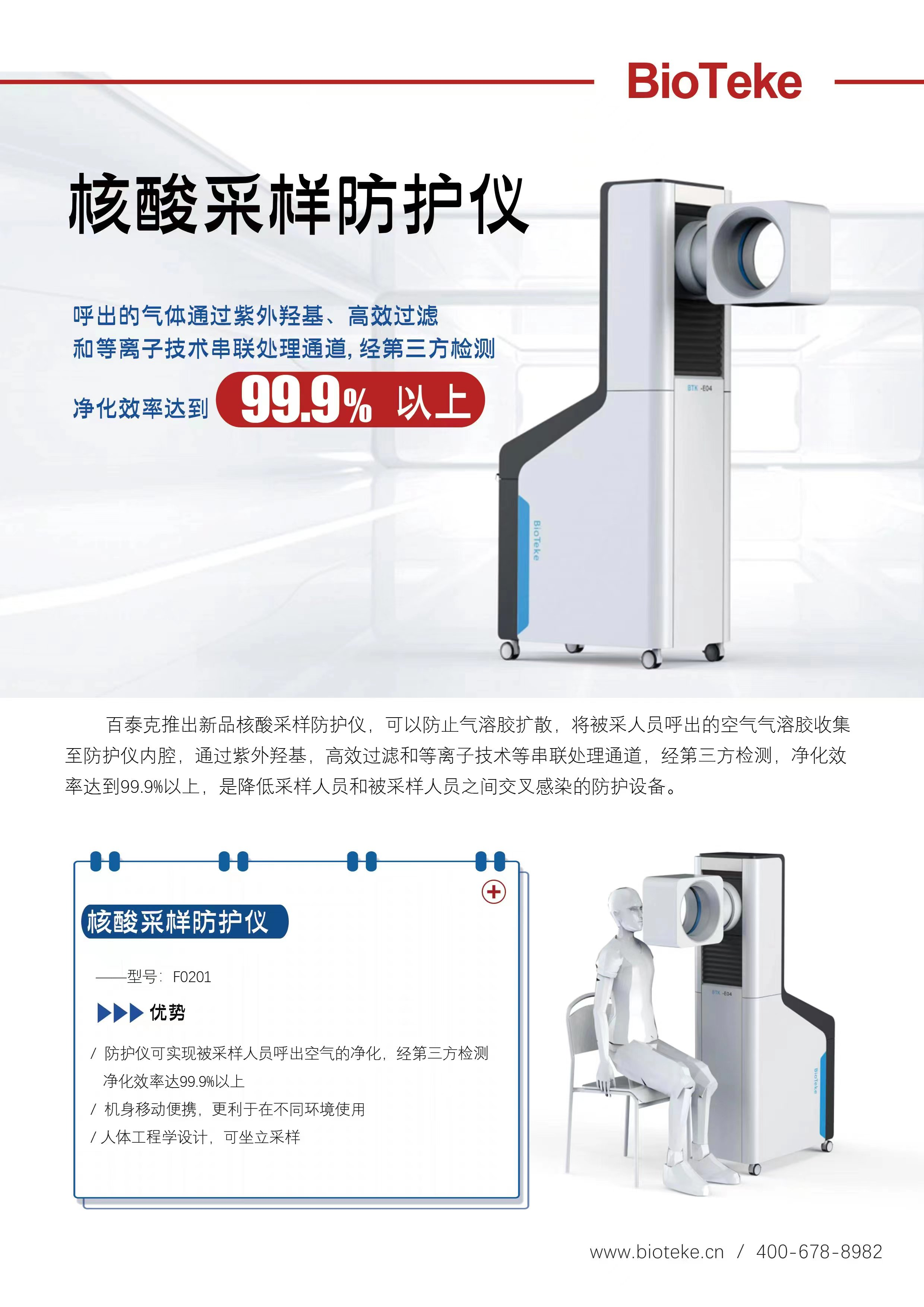 對此,百泰克生物快速成立專題研發(fā)小組,從保護(hù)被采樣者的角度出發(fā),開發(fā)可實(shí)現(xiàn)氣溶膠消毒功能的采樣儀,并迅速研制出樣品,最終成功推出國內(nèi)首款采樣防護(hù)儀,廣泛適用于目前市場上投用的核酸采樣小屋以及不具備采樣小屋安裝條件的場所。