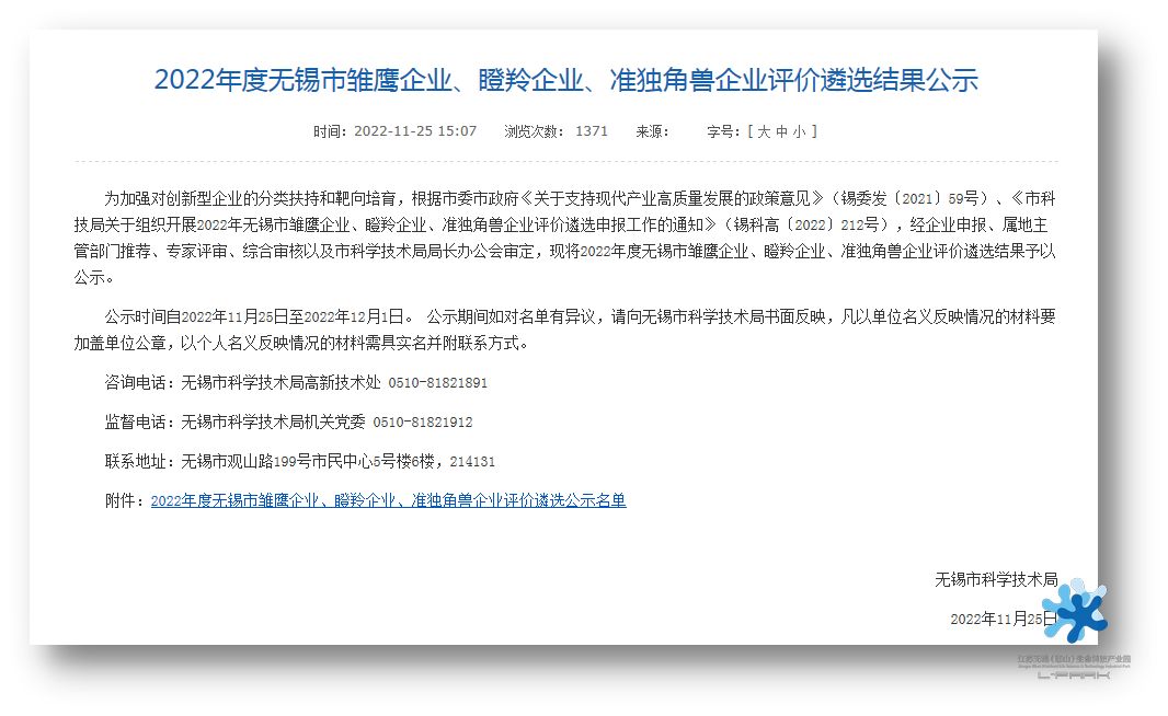 日前,無錫市科技局公示2022年度無錫市雛鷹企業(yè)、瞪羚企業(yè)、準獨角獸企業(yè)評價遴選結(jié)果;全市共116家雛鷹、88家瞪羚、27家準獨角獸企業(yè)通過遴選,其中惠山區(qū)各為15家、14家和3家。本年度惠山生命園新增4家通過遴選,其中艾柏森生物成功遴選雛鷹企業(yè),傳奇生物成功遴選瞪羚企業(yè),高峰醫(yī)療、海萊新創(chuàng)成功遴選準獨角獸企業(yè)。值得一提的是,本次惠山區(qū)共3家通過準獨角獸企業(yè)遴選,其中惠山經(jīng)開區(qū)兩家,均為生命園企業(yè)。