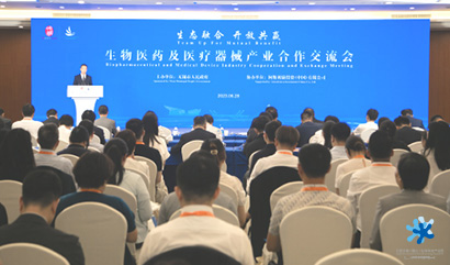 ? ? ? ?下午,作為活動分論壇,無錫市人民政府同址舉辦“生物醫(yī)藥及醫(yī)療器械產(chǎn)業(yè)合作交流會”,來自無錫生物醫(yī)藥和醫(yī)療器械行業(yè)的跨國公司高層、行業(yè)協(xié)會、投行代表近150人齊聚一堂,以“生態(tài)融合 開放共贏”為主題,掀起一場產(chǎn)業(yè)融合發(fā)展的“頭腦風暴”,為加快推動我市生物醫(yī)藥產(chǎn)業(yè)集群創(chuàng)新發(fā)展探尋新藍海、開拓新未來。惠山區(qū)泛生子、茵絡(luò)醫(yī)療、時代天使、保諾生物、凱信遠達、帕母醫(yī)療等十多位代表企業(yè)負責人應(yīng)邀出席。