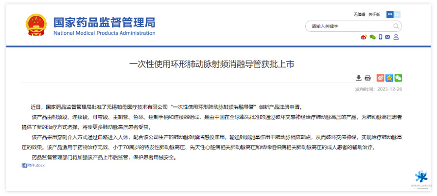 ? ? ? ?日前獲悉,帕母醫(yī)療自主研發(fā)的一次性使用環(huán)形肺動(dòng)脈射頻消融導(dǎo)管于2023年12月22日獲得國家藥品監(jiān)督管理局(NMPA)批準(zhǔn)上市,即將于取得生產(chǎn)許可證后開啟產(chǎn)業(yè)化,引領(lǐng)全球肺動(dòng)脈高壓介入治療的新時(shí)代。