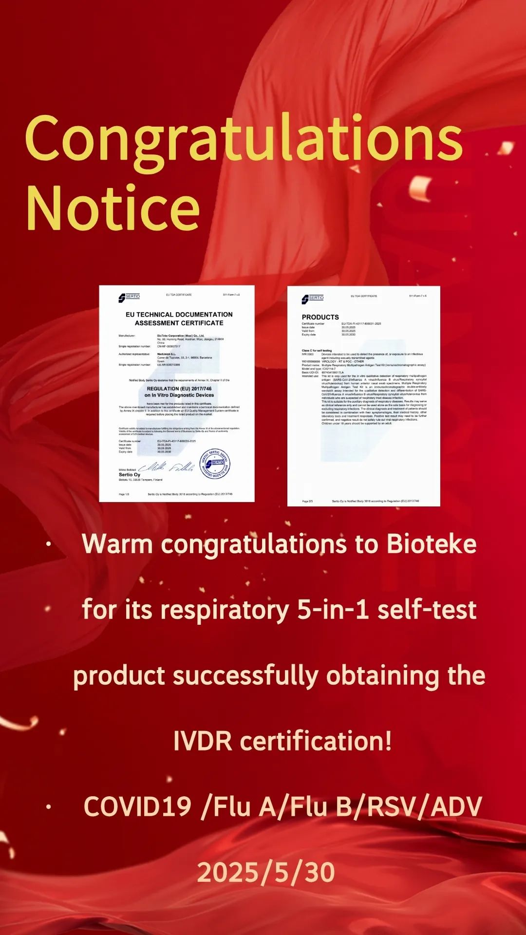 - 熱烈祝賀百泰克呼吸道五聯(lián)檢自測產(chǎn)品成功獲得IVDR認(rèn)證